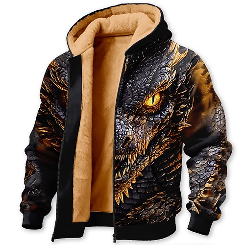 Herren Drache 3D-Druck Fleece Kapuzensweatshirt Pullover Mode Lässig Fantasie Rundhalsausschnitt Outdoor Klettern Blau Gelb Rote Grün Reißverschluss Herbst Winter Designer S M L XL 2XL 3XL