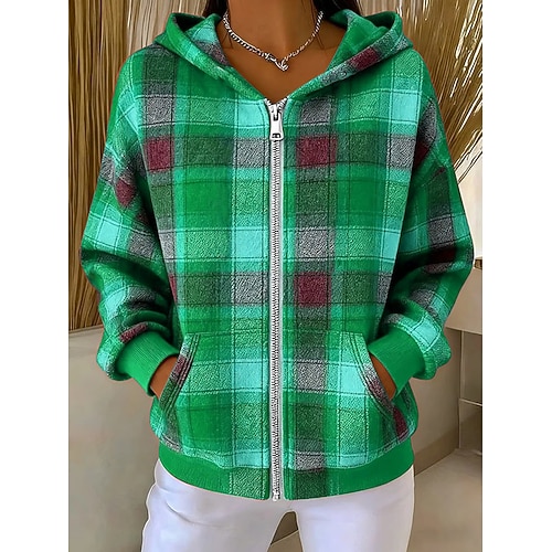 Per donna Felpe con cappuccio Grafico Plaid Moda Casual Manica Lunga Con Cappuccio Top Regolari Streetwear Abbigliamento Quotidiano Patchwork Cerniera Tasca Giallo Blu Viola Marrone Verde Autunno