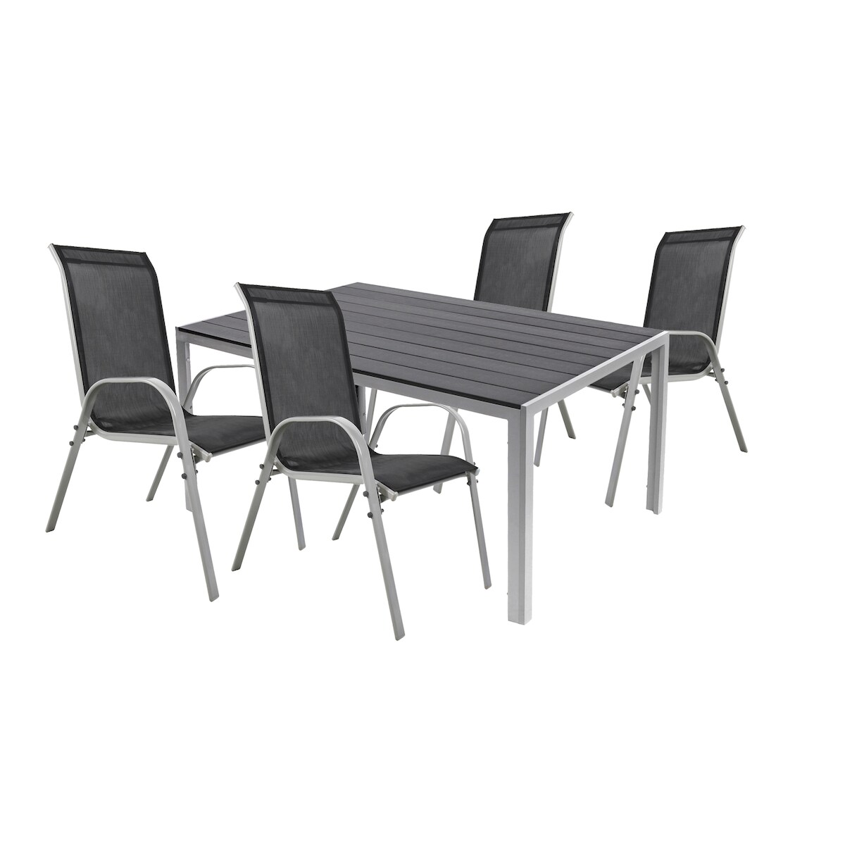 Mojawo 5tlg Gartenmöbel Set Alu silber Non-Wood 180x90cm + 4 Stapelstühlen