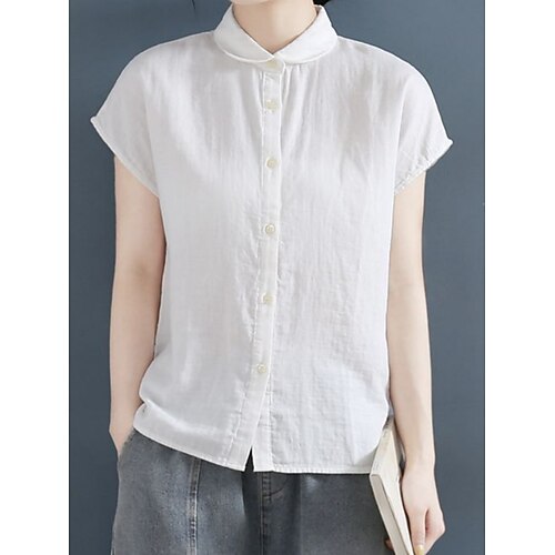 Camicie in Lino Falso per Donna con Bottoni di Colore Solido Stile alla Moda di Base Casual Maniche Corte Colletto Camicia Top Regolari Giornalieri Nero Bianco Rosa Verde Azzurro Chiaro Estate