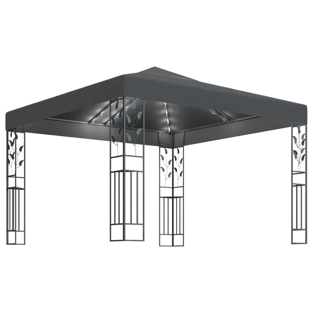 Pavillon med LED-lyskæder 3x3 m antracitgrå