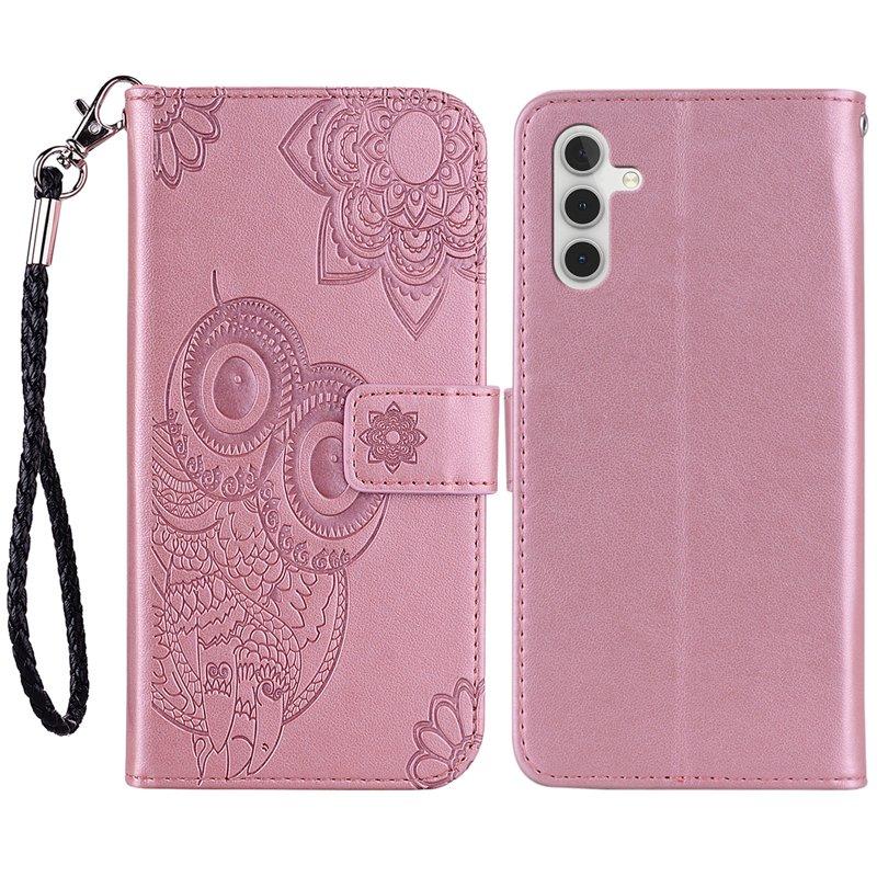 Samsung Galaxy A35 5G Fodral Äkta Läder Uggla - Roséguld