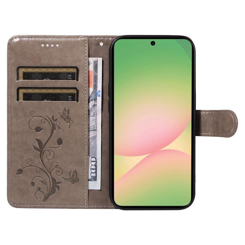Samsung Galaxy A57 Plånboksfodral Konstläder Blommönster - Grå