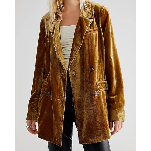 Per donna Blazer Blazer di velluto Confortevole Tasca Bottoni Moda Semplice Feste Festa / Sera Uscire Regolare Collo ripiegato Vestibilità regolare Manica Lunga Capispalla Nero Vino Verde scuro