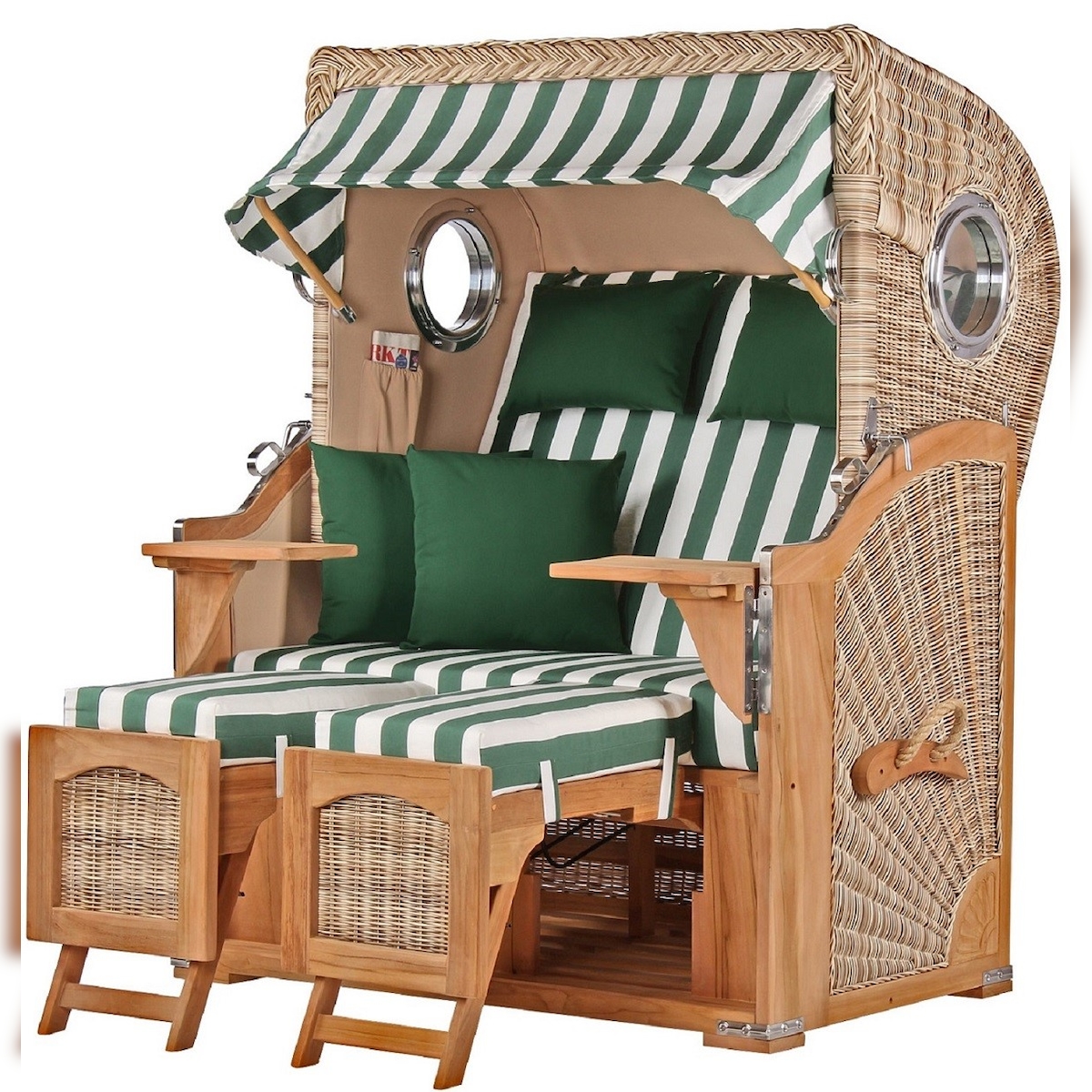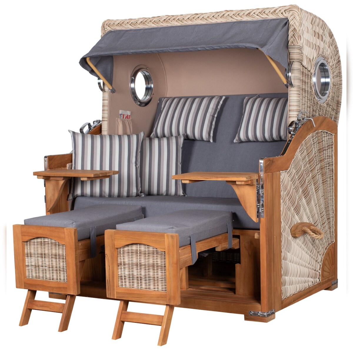 Mr. Deko Strandkorb - bene living - Ammersee Grande XL Teak Bullauge - PE shell - Modell 544 - 2,5-Sitzer inkl. Liftersystem
