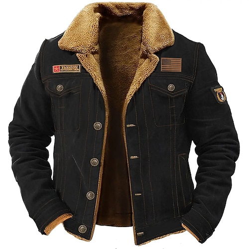 Per uomo Bandiera degli Stati Uniti Giacca in Pile Giacca Cargo Giacca Sherpa Tattico Calore Termico Vintage All'aperto Casa Casuale Ricamato Tasche Multiple Cappotti invernali Autunno Inverno Collo