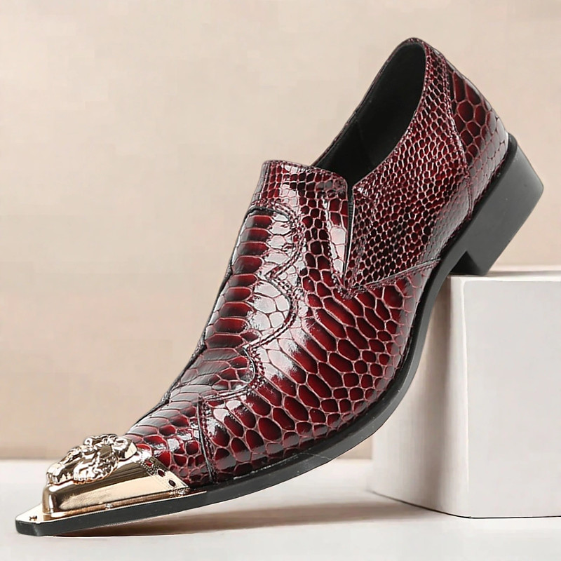 Men's Brown Gothic Leather Dress Shoes–Premium Cowhide Party Footwear with Gold Tip Studded Details Buckle Strap and Pointed Steel Toe for Luxury Balls Costume Dinners and Evening Celebrations