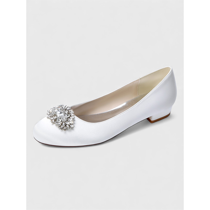 Women's Elegant Satin Flats with Rhinestone Embellished Toe – Classic Round-Toe Dress Shoes for Ladies, Perfect for Formal Events, Weddings, Parties Refined Everyday Wear