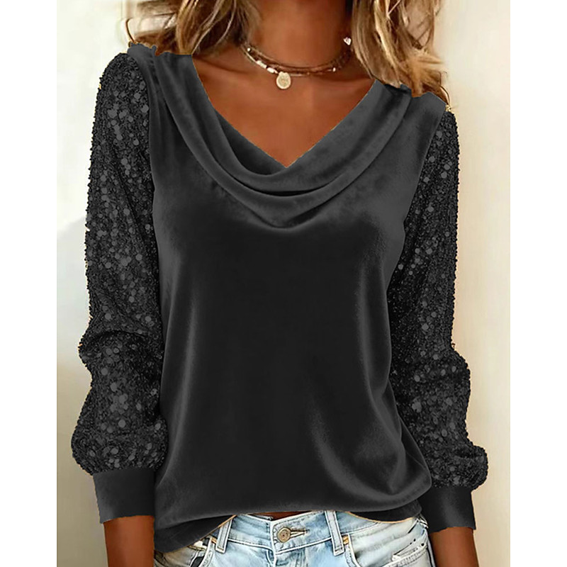 Women's Blouse Dressy Tops Sequin Tops Plain Elegant Vintage Ladies Long Sleeve Cowl Neck Regular Tops Daily Work Holiday Ruched Sequins Patchwork Blue Black Pink Red Purple Fall Winter