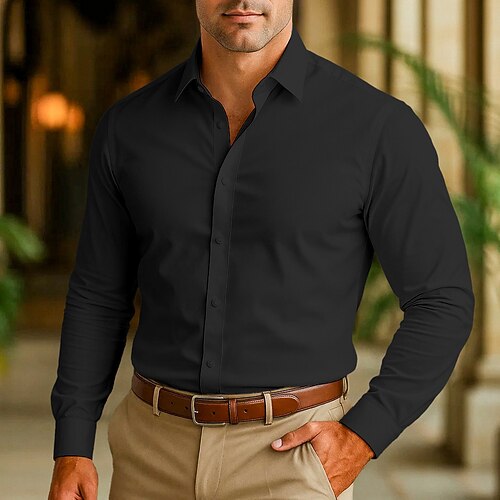 Per uomo Camicia Camicia elegante Camicia non stiro Camicia con Colletto Camicia con Bottoni Semplice Matrimonio All'aperto Nero Bianco Rosa Vino Manica Lunga Collo ripiegato Estate Primavera