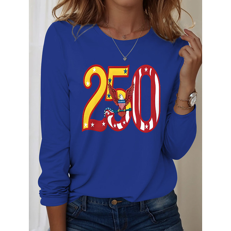 American 250th Women's Independence Day T Shirt Graphic Flag Flag Fashion Stylish Classic Long Sleeve Crew Neck Round Neck Regular Tops Daily Weekend Print Blue Black White Red Summer Spring Fall