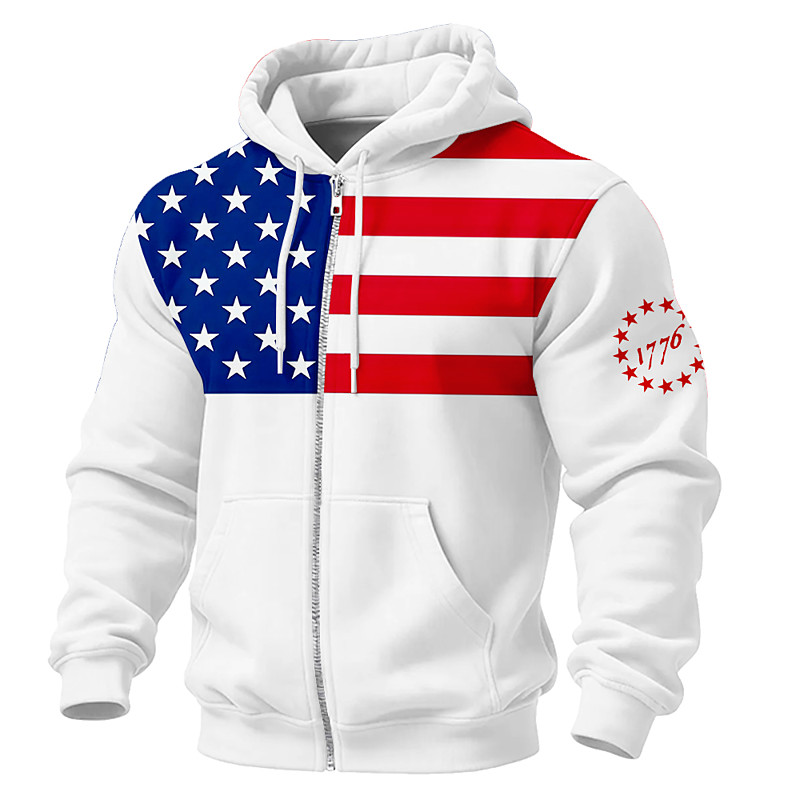 America's 250th Anniversary Men's American US Flag Hoodie Jacket Sweatshirt Fashion Cool Daily Hooded Streetwear Vacation Going out White White 2 White 3 Drawstring Zipper Fall Winter Designer S M L
