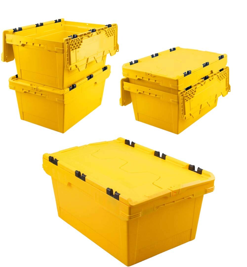 BRB Set, 5x Mehrwegbehälter mit Klappdeckel, gelb, verplompbar, LxBxH 600 x 400 x 200 mm, 29 Liter