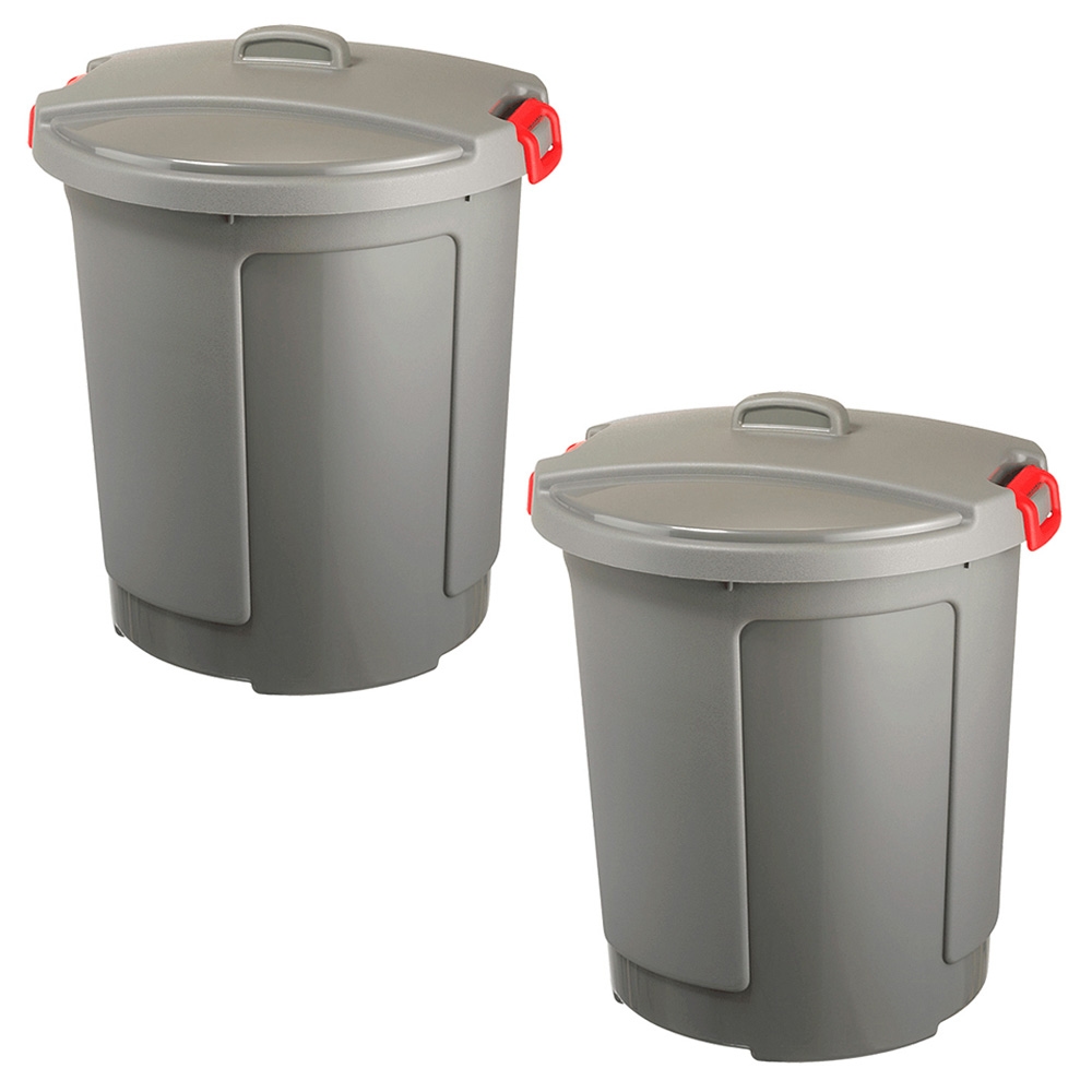 BRB 2 Kunststofftonnen/Rundtonnen mit Deckel, 75 Liter, frostsicher bis -20°C, grau