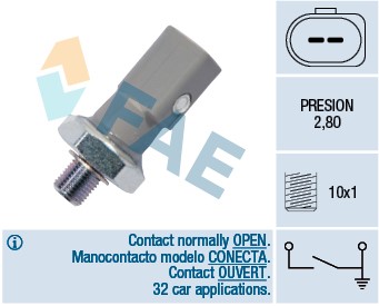 Öljynpainekytkin Fae 12855 - audi a4 b8, a4 b8 avant, a5, a5 cabriolet, a5 sportback, a6 allroad c6, a6 c6, a6 c6 avant, a8 d3, q5 - OE 06E 919 081 C