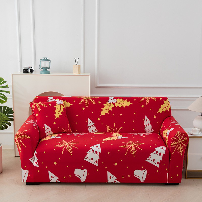 Christmas Print Sofa Cover Dustproof All-powerful Slipcovers Stretch Sofa Cover Super Soft Fabric Couch Cover with One Free Boster Case(Chair/Love Seat/3 Seats/4 Seats)