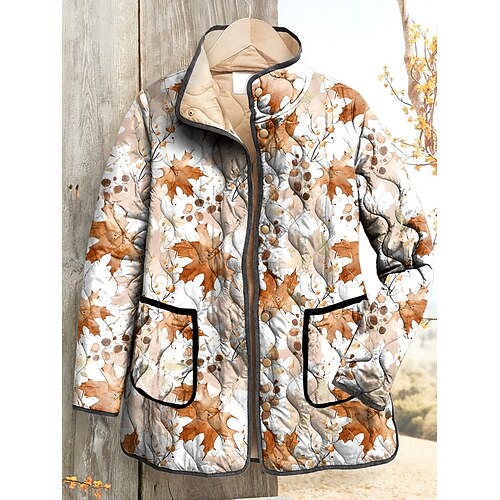 Per donna Giacca trapuntata Caldo Leggero Stampato Elegante Attivo Quotidiano Floreale All'aperto Vacanza Casa Casuale Lungo Collo alla coreana Vestibilità regolare Manica Lunga Capispalla Giallo