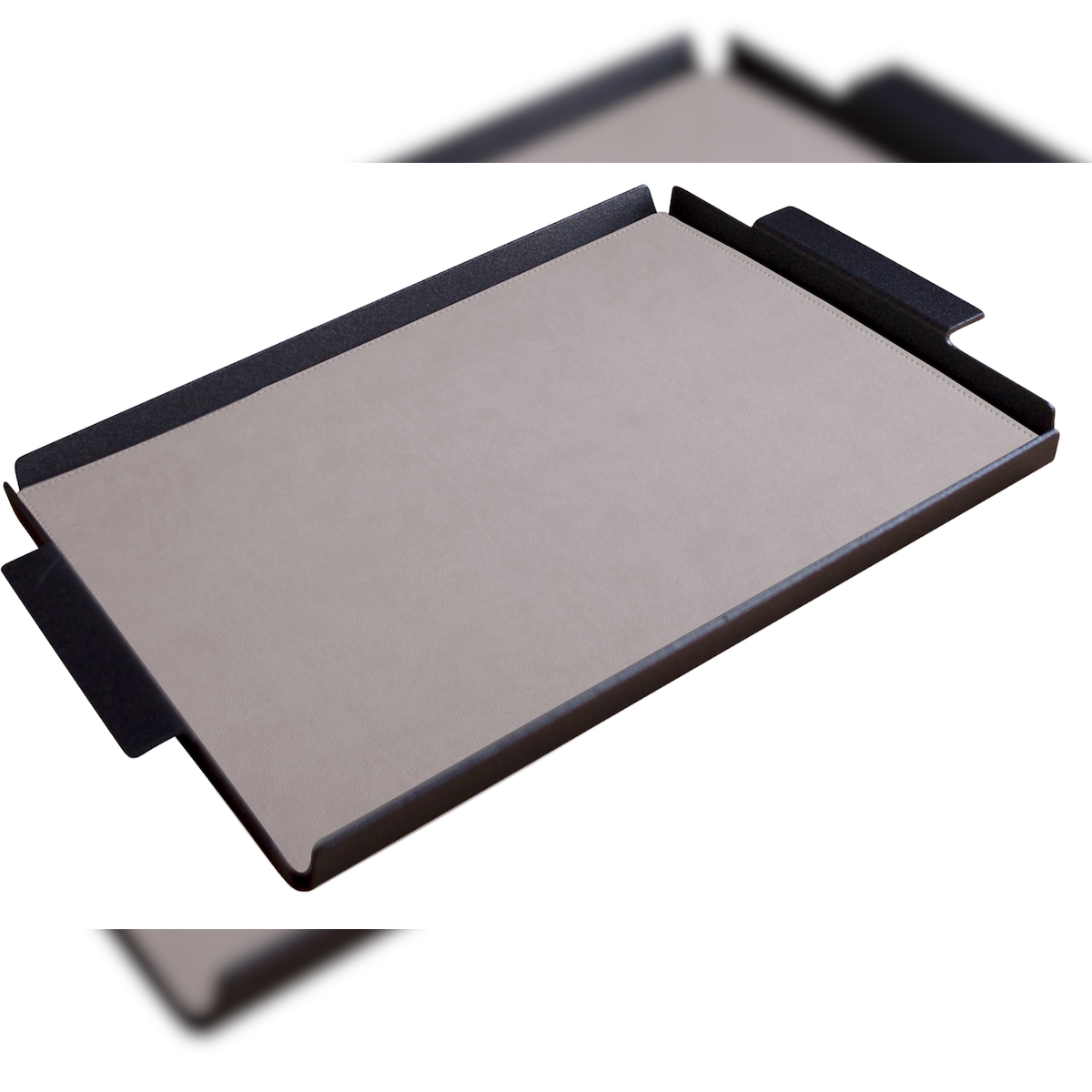 Stil Casa, 6er-Set Serviertabletts, schwarz lackiertes Aluminium, Deckel aus genähtem, laminiertem Polyurethan, 45x65xh. 0,2 cm, rosa.