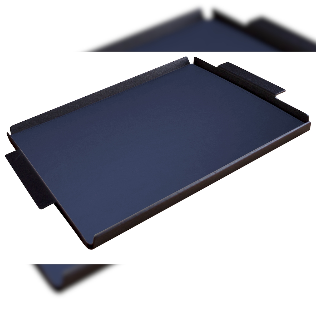 Stil Casa, 6er-Set Serviertabletts, schwarz lackiertes Aluminium, Deckel aus genähtem, laminiertem Polyurethan, 37x53xh. 0,2 cm, Farbe saffianoblau.