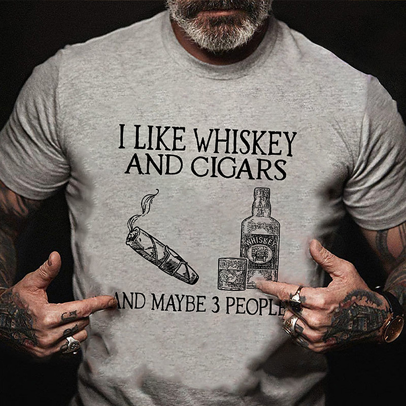Men's Funny T-Shirt - 'I Like Whiskey and Cigars and Maybe 3 People' Lifestyle Humor Graphic Tee
