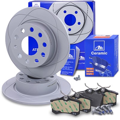 Ate POWERDISC Bremsscheiben +CERAMIC Bremsbeläge hinten [Hersteller-Nr. 10696295] für VW, Seat, Audi, Skoda