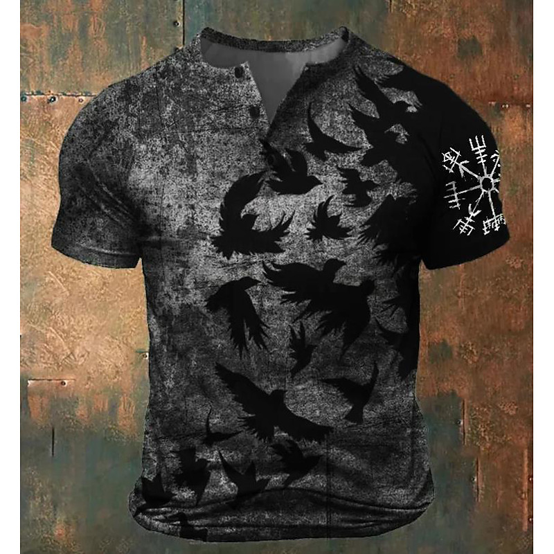Men's Cool Bat Henley Shirt Short Sleeve Casual Casual All Seasons Gray Red Henley Henley T-Shirt