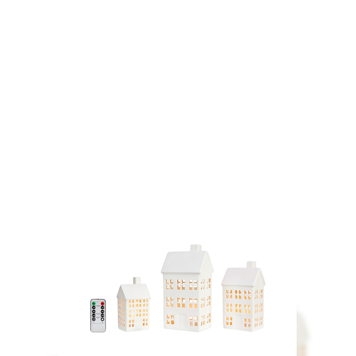 MARKSLÖJD Eton Häuser Tischdekoration 3er-Set Weiß Bat.