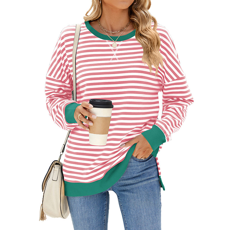 Women's Pullover Striped Streetwear Casual Comfy Long Sleeve Crew Neck Regular Tops Street Holiday Going out Print Black Pink Red Blue Fall