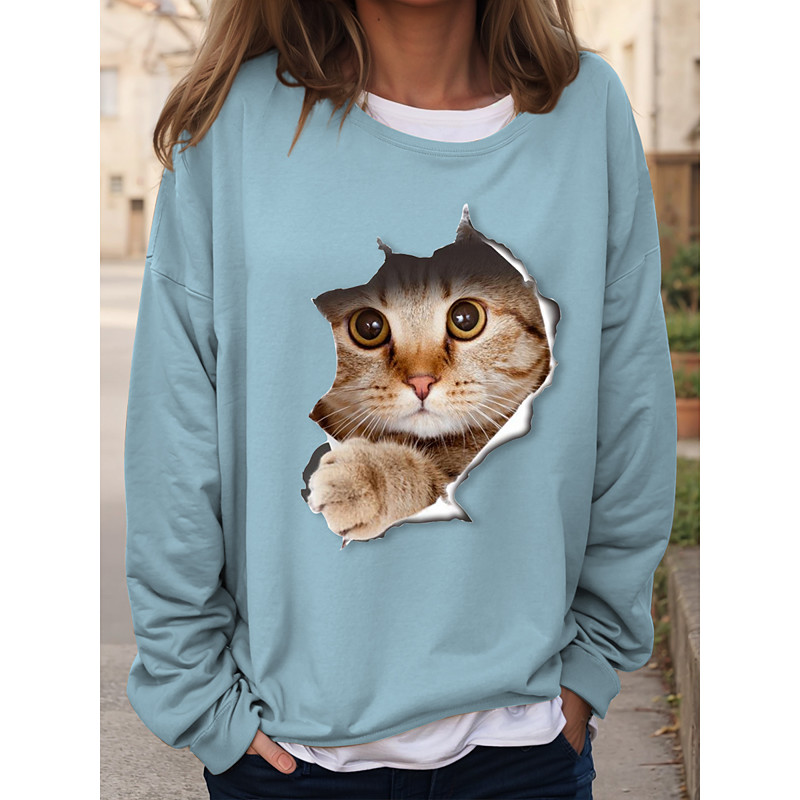 Women's Sweatshirts Graphic Cat Casual Long Sleeve Crew Neck Regular Tops Casual Print Black Pink Red Blue Khaki Fall Winter