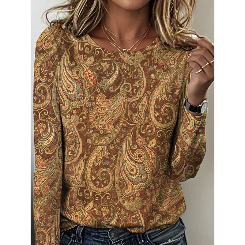 Women's T Shirt Floral Graphic Paisley Vintage Stylish Casual Long Sleeve Crew Neck Regular Tops Daily Print Blue Brown Green Spring Fall Winter