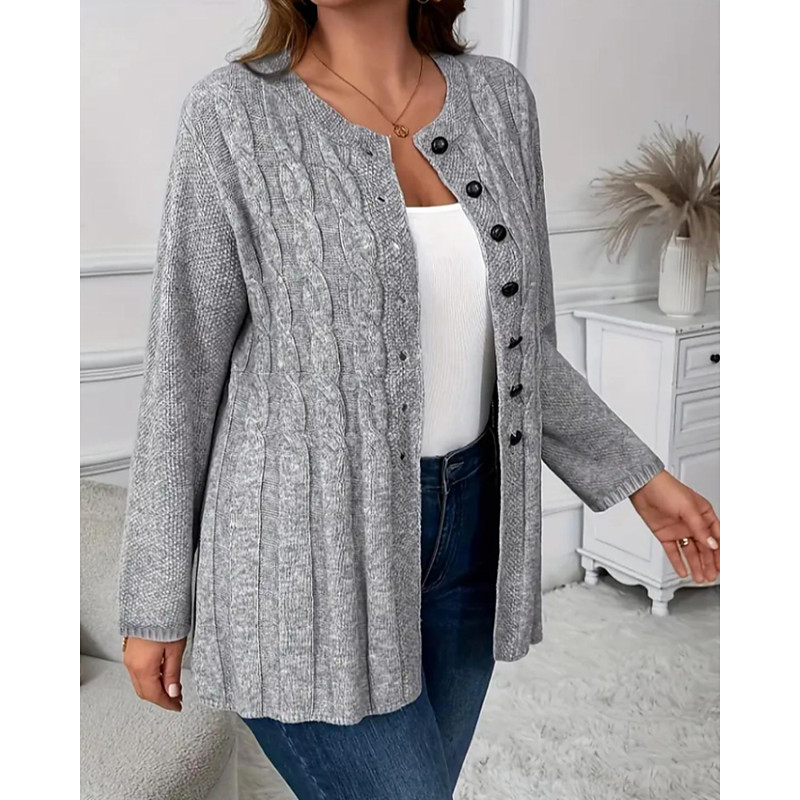 Women's Sweater Cardigan Streetwear Casual Solid Color Crew Neck Buttons Knitted Long Sleeve Regular Tops Knit Daily Going out Weekend Gray Fall Winter