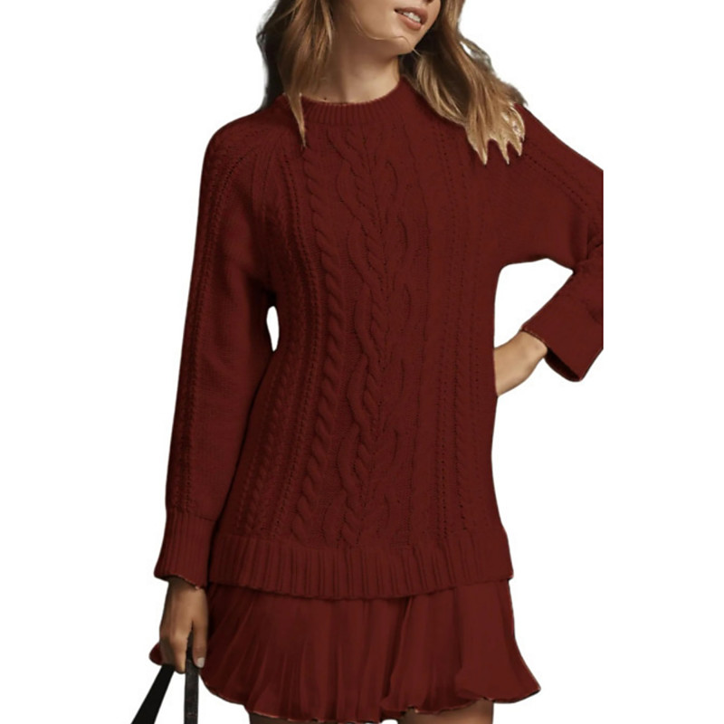 Women's Sweater Dress Casual Soft Pure Color Ribbed Crew Neck Ruffle Knitted Long Sleeve Regular Tops Knit Outdoor Daily Weekend Black Pink Fall Winter