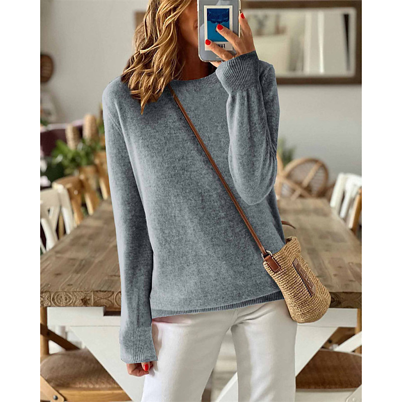 Women's Sweater Pullover Elegant Fashion Cute Solid Color Crew Neck Knitted Long Sleeve Regular Tops Knit Outdoor Home Work Black White Fall Winter