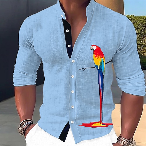 Per uomo Pappagallo Camicia Camicia con Bottoni Manica Lunga Moda Streetwear Designer All'aperto Casuale Quotidiano Estate Primavera Autunno Collo alla coreana Stampato Nero Bianco Blu Verde Cachi