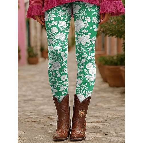Per donna Leggings Vacanza Vintage Moda Lunghezza alla caviglia Vita Alta Grafico Paisley Stampa Calore Termico Morbido Traspirante Elasticizzato Formale All'aperto Vacanza Verde Cachi Estate