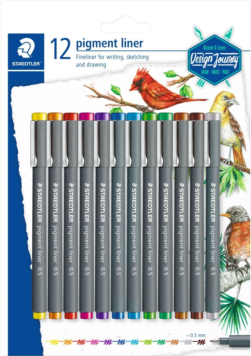 STAEDTLER Pigment liner 0,5mm farbig sortiert VE=12 Stück Blister