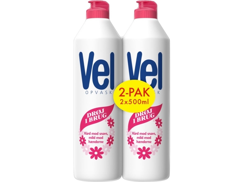 Håndopvask, Vel Regular, 1000 ml, 2x500 ml, med farve og parfume - (18 stk.)