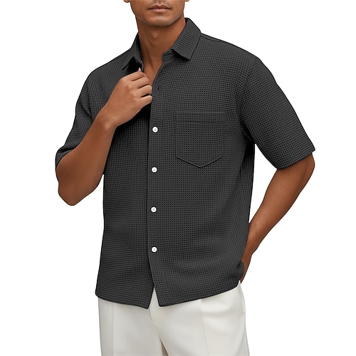 Per uomo Camicia Camicia popover Camicia Estiva Camicia casual Camicia da Spiaggia Camicia a maglia a nido d'ape Nero Bianco Blu Azzurro cielo Verde militare Manica Lunga Semplice Collo alla coreana