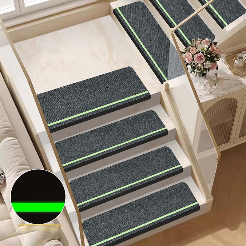 Glow in the Dark TPR Stair Treads, Self-Adhesive Non-Slip Step Mats, No Glue Carpet Pads for Wooden Stairs