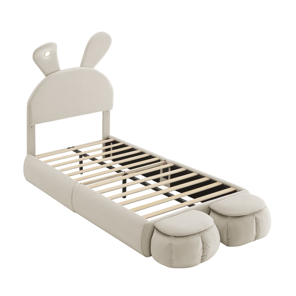 Letto in velluto beige 90×200 cm con 2 pouf contenitore