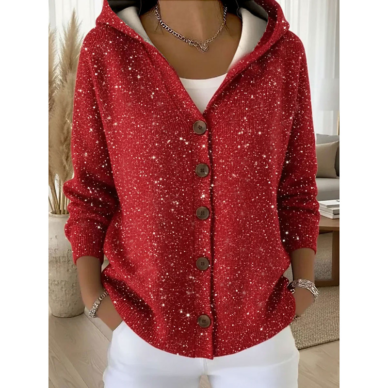 Women's Cardigan Fashion Daily Casual Graphic Polka Dot Ribbed Crew Neck Hooded Floral Buttons Print Long Sleeve Regular Tops Knit Outdoor Daily Date Red Fall Winter