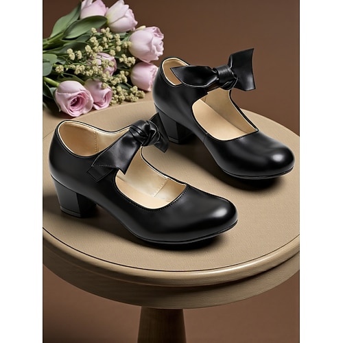 Scarpe con tacco a T da donna vintage anni '50 in similpelle verniciata con dettaglio a fiocco, comode e robuste, eleganti per feste, matrimoni e occasioni speciali