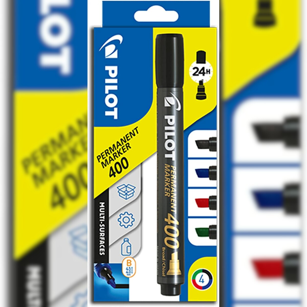 Pilot - SCA-400 Marker flow pack - Chisel Tip - Black - Pack of 4