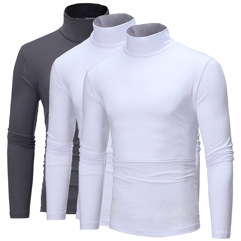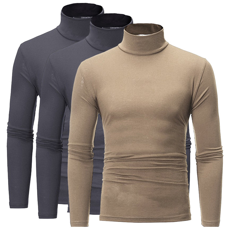 3 Pack Men's T Shirt Turtleneck shirt Long Sleeve Shirt Long Sleeve Rolled collar Fall Fall Winter Plain Lightweight Basic Classic 3-Piece Outdoor Casual Sports white black blue Top Tee for Men