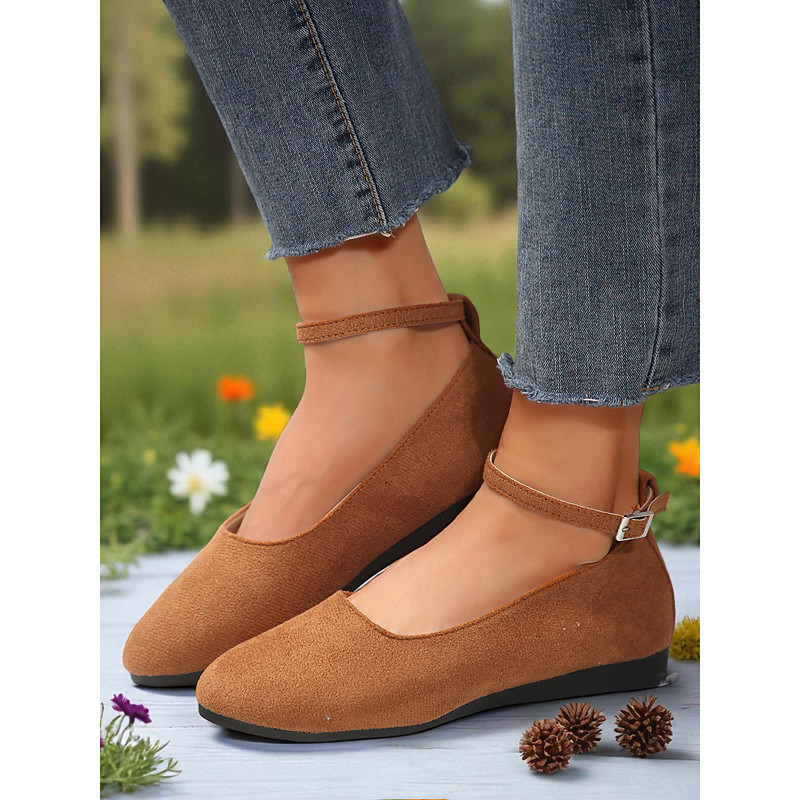 Women's Black Ankle Strap Faux Suede Flats – Elegant Casual Ballet Shoes for Office, Daily Walks Fall Outfits
