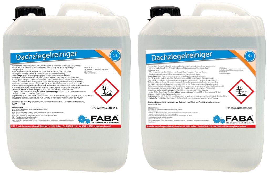 FABA Dachziegelreiniger Konzentrat, Dachziegel Reiniger 2 x 5 L