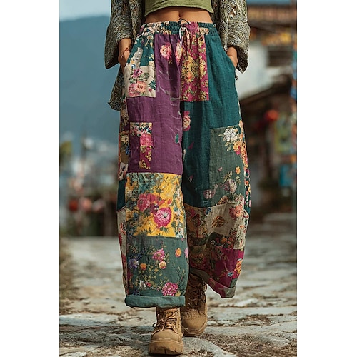 Per donna Culotte Gamba Larga Gamba larga Chinos Vacanza Vintage Stile Etnico Lunghezza intera Vita Alta Floreale Grafico Coulisse Patchwork Stampa Asciugatura Rapida Traspirabilità Morbido Inelastico