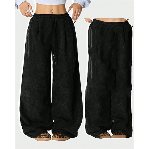 Per donna Gamba larga Chinos Casual Lunghezza intera Naturale Semplice Pieghettato Gamba larga Comodo Traspirabilità Casual Quotidiano Nero Rosa Verde Chiaro Blu Primavera Autunno Vestibilità comoda
