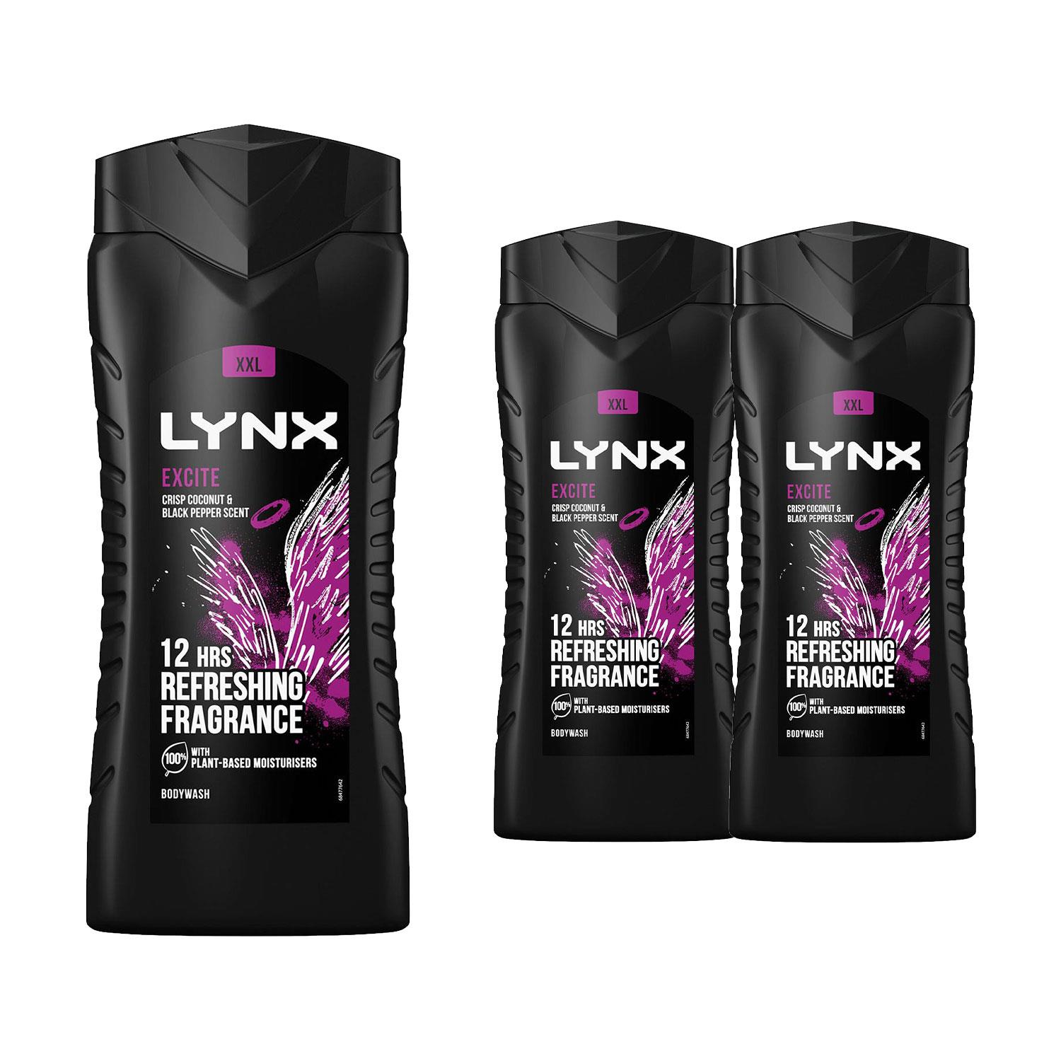 Lynx Mens Excite 12-H Refreshing Fragrance Shower Gel Body Wash for Men, 6x225ml - One Size | Lynx Sale | Discount Designer Brands