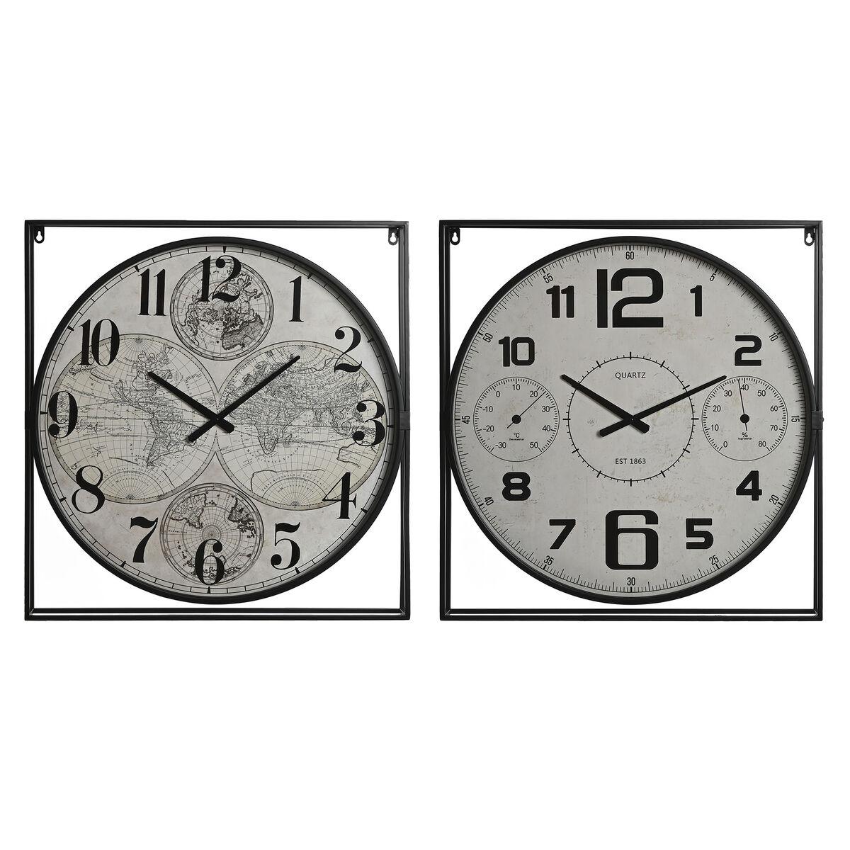 Vægur - sort/hvid, vintage, træ/MDF & jern, 60 × 60 cm (2 enheder)